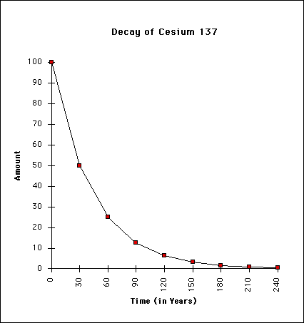 A table with the above information on cesium-137's decay is below: